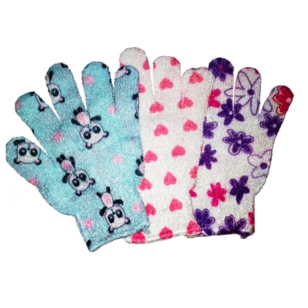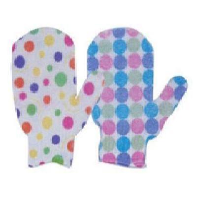 Guante manopla exfoliante c/dedo decorado
